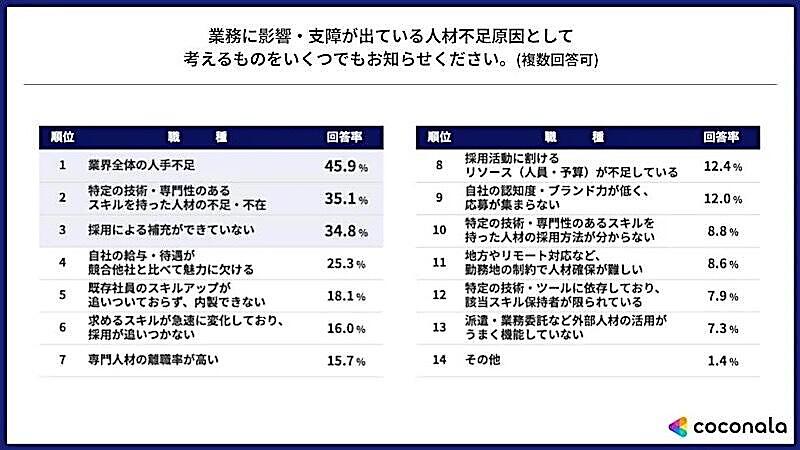 人材不足の要因、最多は「業界全体の人手不足」