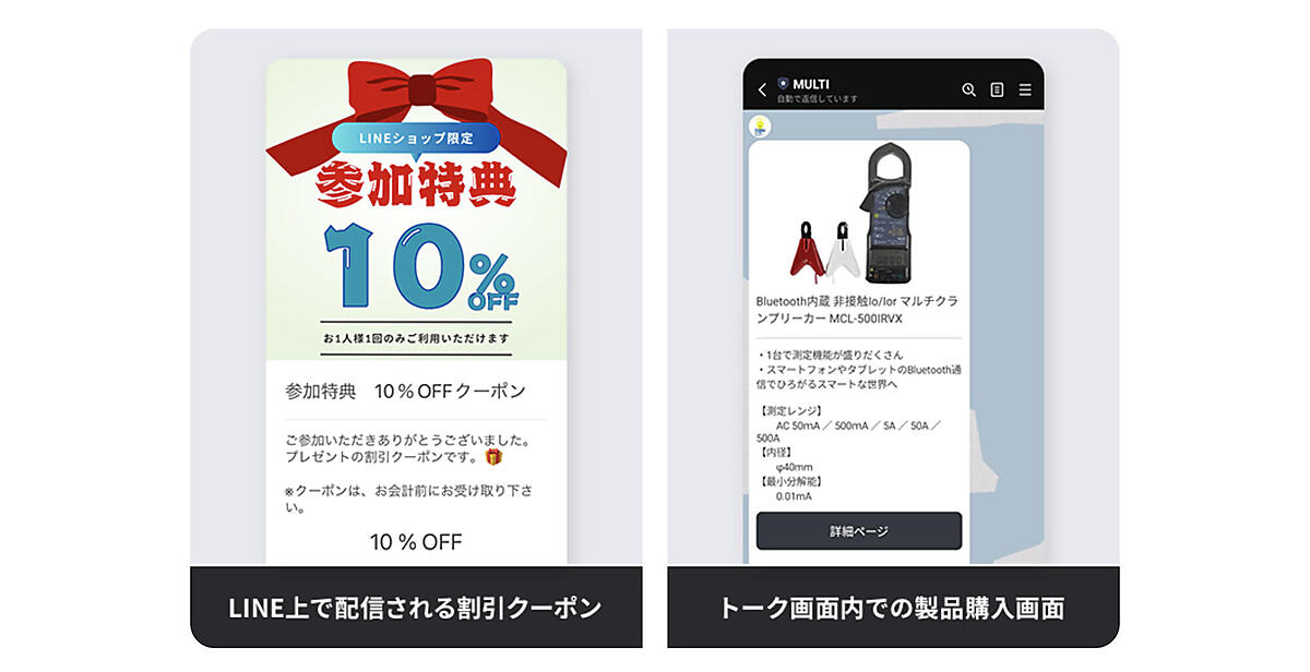 その結果、半年後にはマルチ計測器の売上高のうち18%がLINE経由になった。従前は、LINE経由はわずか1%程度だったという。「Atouch」導入後は、顧客企業の職人が直接LINEから注文できるようになり、事務担当者の業務負担が大幅に軽減された。決済は「PayPay」などで事前にできるため、与信審査も不要になったという。