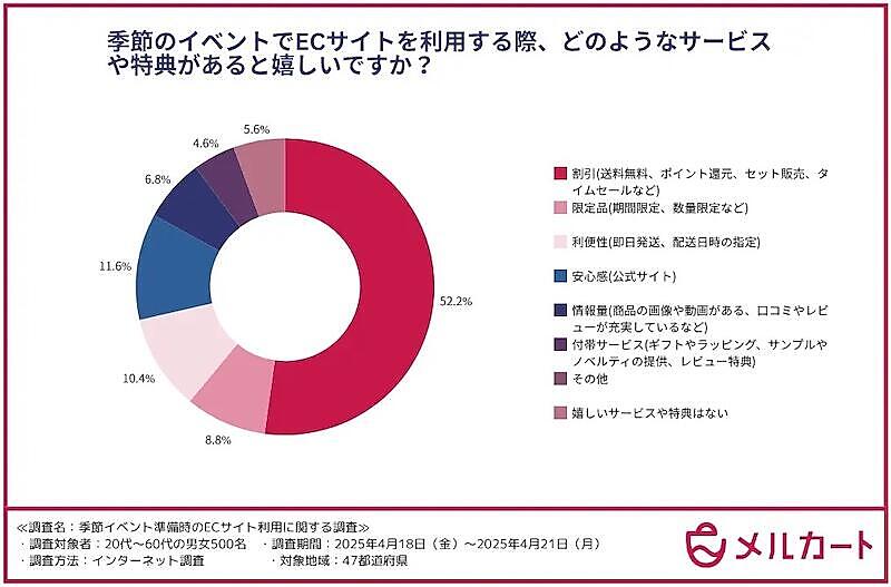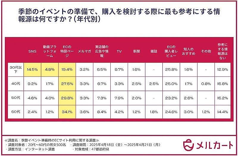 調査対象は、季節イベント準備時にECサイトを利用した経験のある20~60代の男女500人。調査期間は2025年4月18~21日。