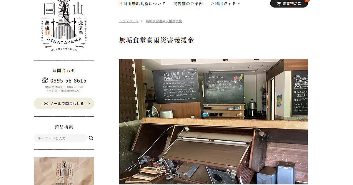 線状降水帯が発生し、記録的な大雨が続いた鹿児島県。豪雨災害で被害を受けた「日当山無垢食堂」が再建をめざし、クラウドファンディングで復興資金を募っている。