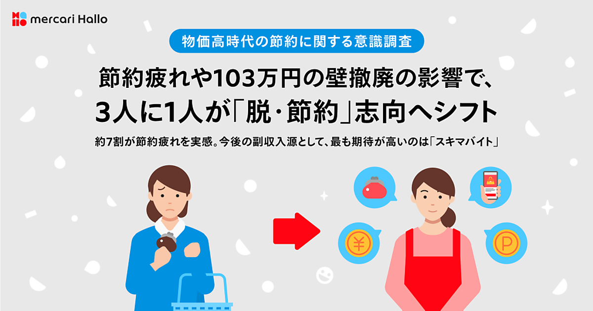 メルカリは8月22日、スキマバイトサービス「メルカリ ハロ」において、長期化する物価高や「103万円の壁」撤廃を背景に、生活者の家計防衛に対する意識や行動がどのように変化しているかを探る「物価高時代の節約に関する意識調査」の結果を発表した。
