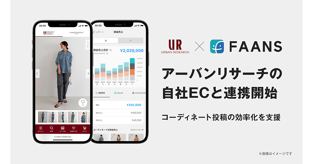 これまでアーバンリサーチは、「ZOZOTOWN」など販売チャネルへの投稿には「FAANS」を、自社ECへの投稿には別のツールを使用していたが、今回の連携で1回の投稿作業で同時投稿できるようになった。「FAANS」の提供およびブランド自社ECとの連携を通じて、業務負荷の軽減やツールの一元化による業務効率化を支援する。