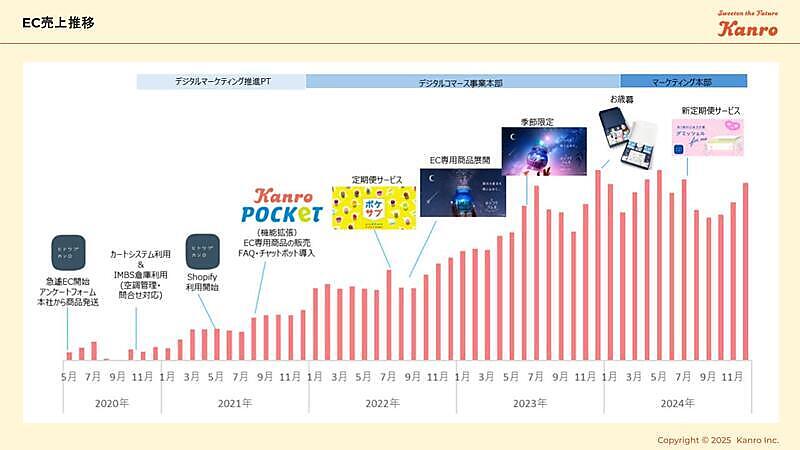 こうした環境整備に加え、後述の商品開発などが実を結び、カンロの自社ECは前期比40~50%増の売上高を維持している。