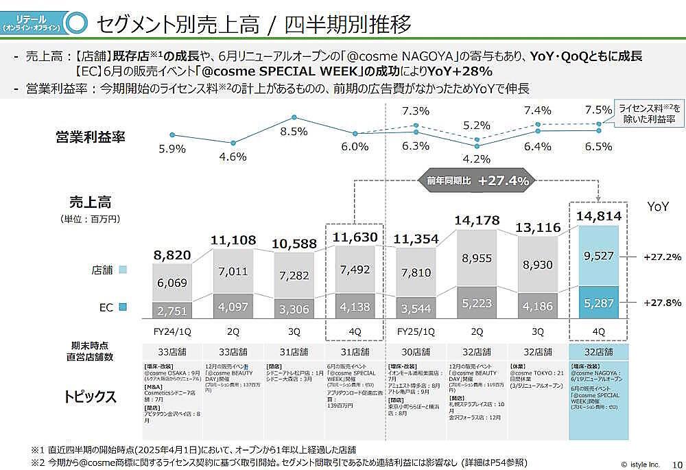 2025年6月期におけるリテール事業全体の連結売上高は、前期比26.9%増の534億6300万円。このうちECだけに着目すると、連結EC売上高は同27.6%増の182億4000万円となっている。