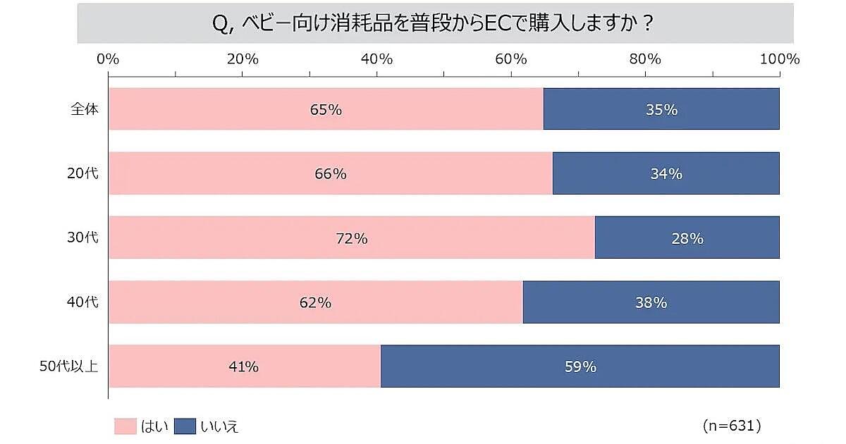 65%が「ベビー向け消耗品を普段からECで購入する」と回答