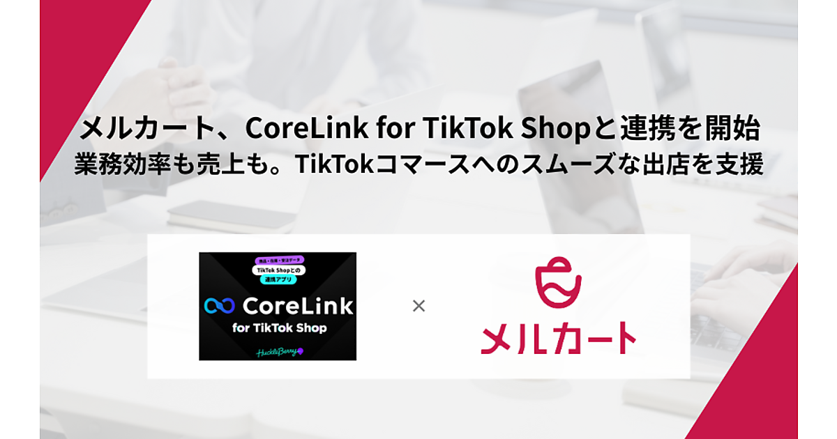 こうしたEC実施事業者の声を踏まえ、「メルカート」と「CoreLink for TikTok Shop」の連携が実現した。連携で「TikTok Shop」と「メルカート」間の商品情報・在庫・受注・キャンセルといった各種データを自動連携。EC事業者は二重管理の手間やミスを減らし、スムーズな運用を実現するという。