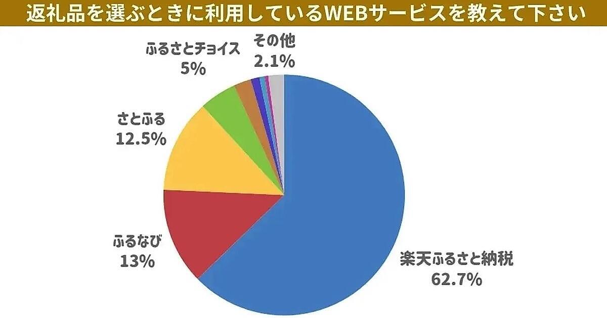 「ふるさと納税」の利用経験者に、返礼品を選ぶ時に利用したことがあるWebサービスを聞いたところ、最も多かったのは「楽天ふるさと納税」で62.7%、続いて「ふるなび」が13.0%、「さとふる」が12.5%だった。