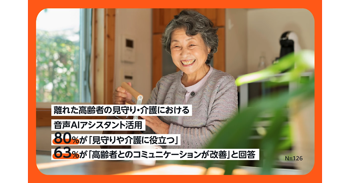 それによると、調査対象者の24.4%が見守り・介護に音声AIアシスタントを利用していることが判明。そのうち8割が「見守り・介護に役立つ」と回答、約6割が「コミュニケーションが改善」と答えた。