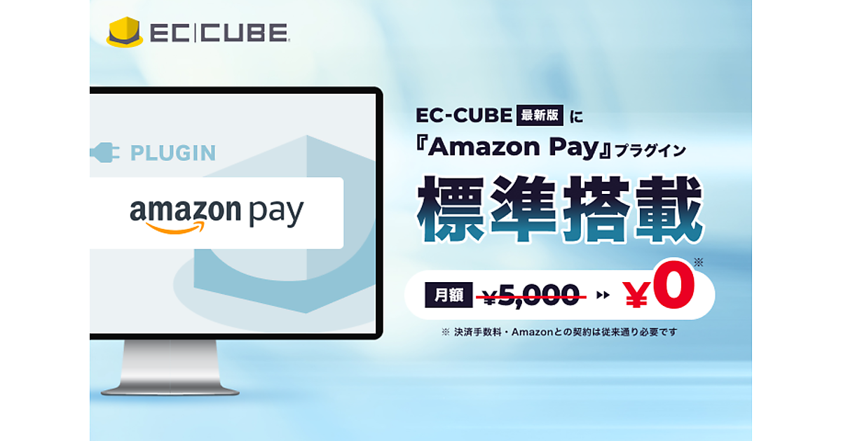 「EC-CUBE」を利用する事業者はこれまで、「Amazon Pay」プラグインの購入からプラグインのインストール作業が必要だったが、標準搭載によりこれらの設定作業が不要になる。 また、「EC-CUBE」で「Amazon Pay」導入時に必要だった月額5000円の固定費も無償化。すべてのEC事業者が、導入したその日から「Amazon Pay」を消費者に提供できるようにした。