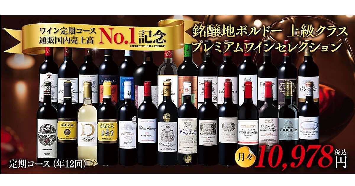 1つ目は「銘醸地ボルドー上級クラスプレミアムワインセレクション (年12回コース)」。価格は月々1万978円としている。高品質ワインの産地「銘醸地ボルドー」の高級産地、高評価、長期熟成、高格付けワインを厳選したコースとなっている。