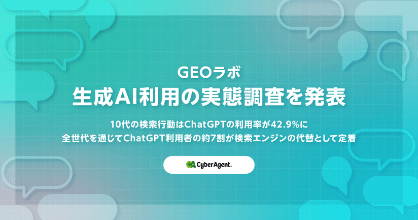 サイバーエージェントは9月11日、インターネット広告事業におけるGEO(Generative Engine Optimization)研究を行う専門組織「GEO Lab.(GEOラボ)」が実施した生成AIのユーザー利用実態に関する調査の結果を公表した。