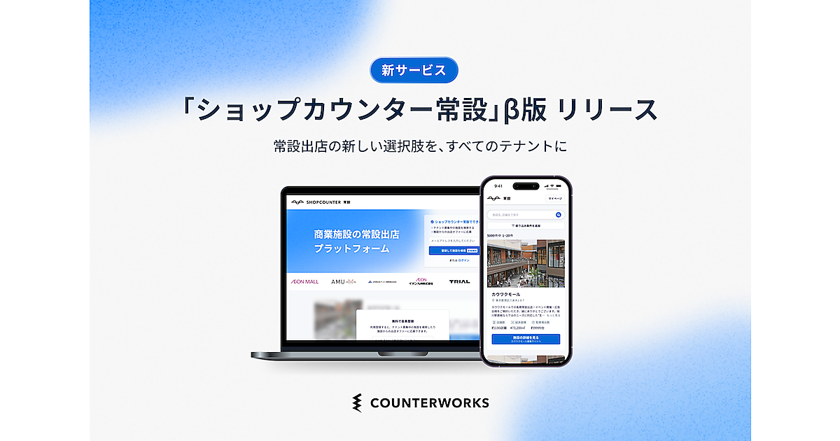 ポップアップストアのマーケットプレイス「ショップカウンター」の運営などを手がけるCOUNTERWORKSは9月12日、商業施設への常設出店に特化したメディア「ショップカウンター常設」のβ版をリリースした。