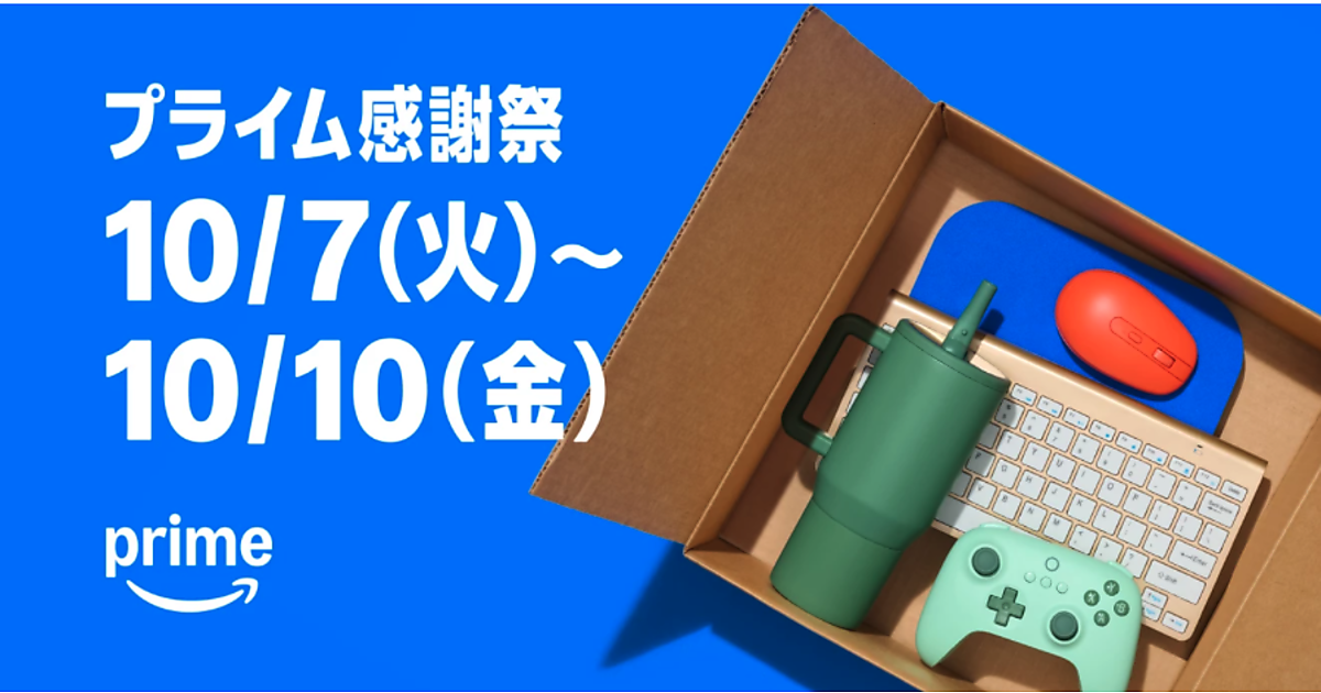 アマゾンジャパンは、Amazonプライム会員限定のセール「プライム感謝祭」を10月7日(火)の0時から10日(金)23時59分まで実施する。初の4日間開催となる。