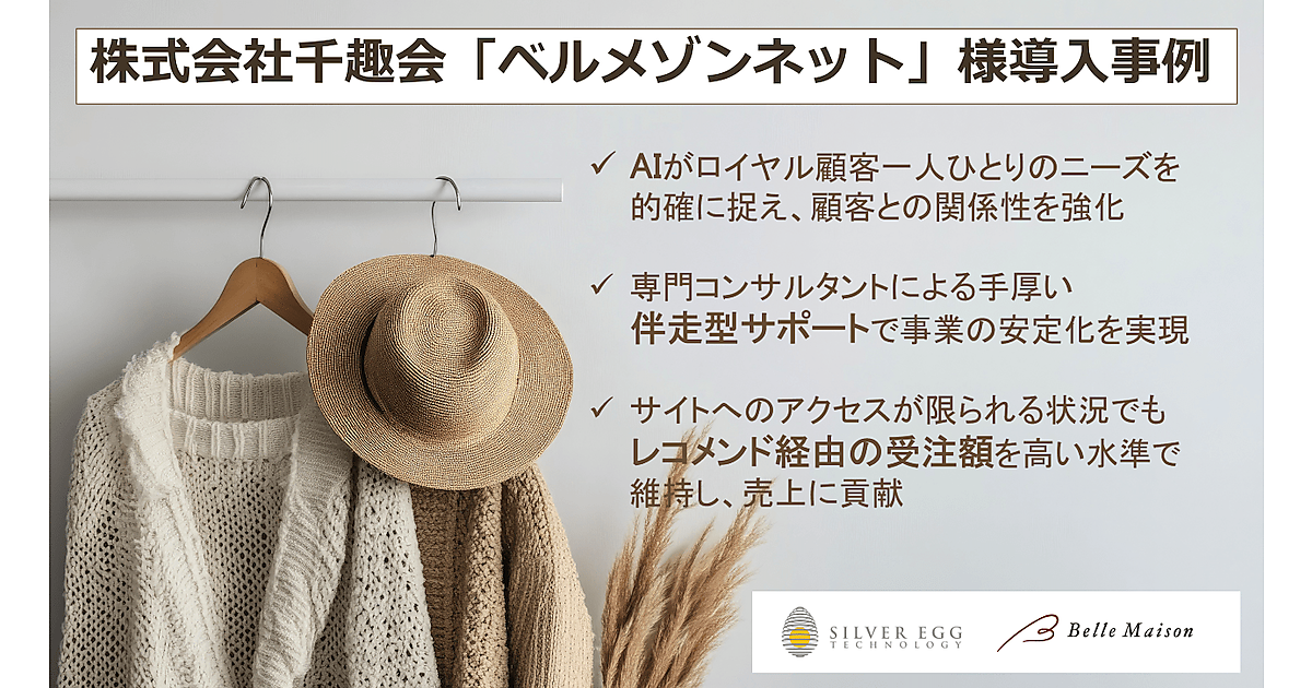 千趣会が導入したのはシルバーエッグ・テクノロジーが提供するリアルタイム・レコメンドサービス「アイジェント・レコメンダー」。