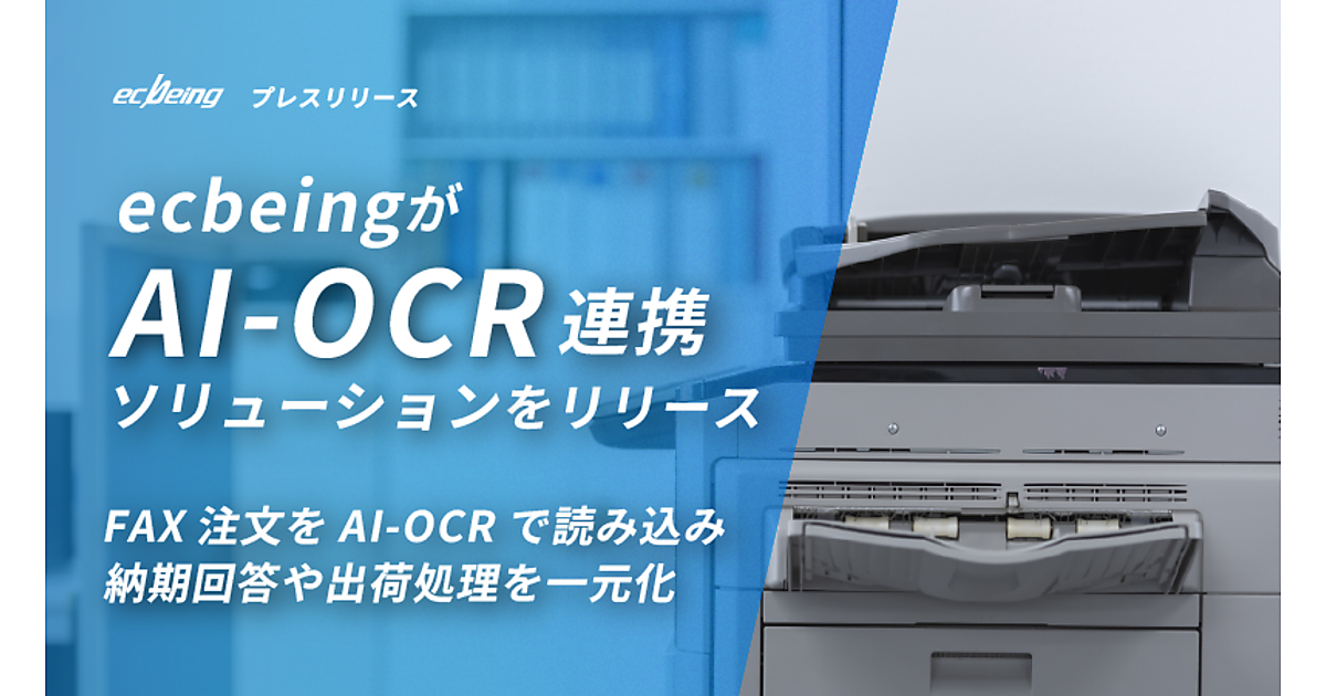 ECプラットフォームのecbeingは10月2日、FAX注文をAI技術を融合させたOCR技術「AI-OCR」で読み込み、EC構築プラットフォーム「ecbeing」に取り込むことでアナログ注文とオンライン注文の納期回答や出荷処理を一元化するBtoB-EC向け「AI-OCR連携ソリューション」をリリースしたと発表した。