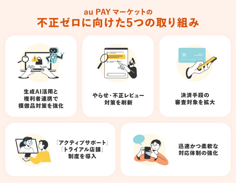 auコマース&ライフは、KDDIと共同で運営するECモール「au PAY マーケット」での生成AI活用による模倣品対策、不正レビューや不正決済への取り組みなど2025年上半期の取り組みをまとめた「安心・安全への取り組みレポート」を公開した。AIと専門審査スタッフを組み合わせた独自の監視体制で不正対策を強化している。