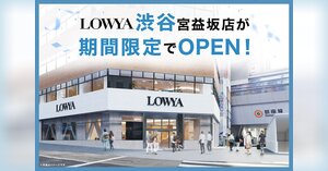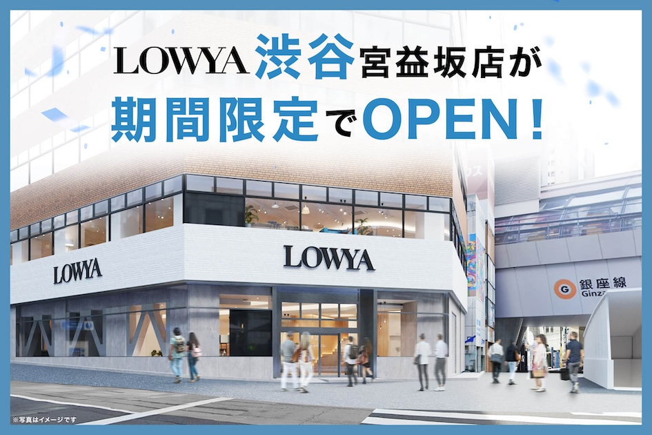 「LOWYA」では2023年にリアル店舗「LOWYA九大伊都店」をオープンし、現在では全国10か所に実店舗を展開。今回は、東京都・渋谷区の宮益坂下交差点に面する「りそな銀行 旧渋谷店」を改築し、1階・2階のフロアを活用した体験型ストア「LOWYA渋谷宮益坂店」をオープンする。