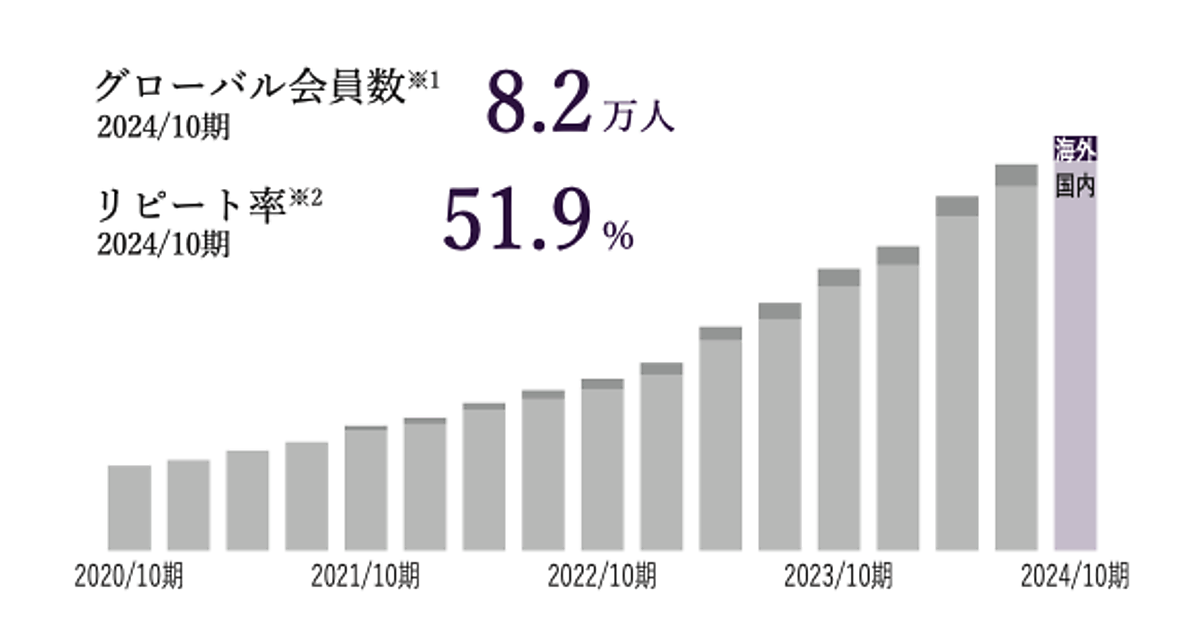 常設の実店舗は東京・大阪・名古屋・横浜の4か所、全国でポップアップストアを展開。海外販売も進めており、越境ECと代理店を通じたグローバル展開を2025年8月現在で、日本を含む14の国と地域で展開している。海外向けの公式オンラインストアのほか「Tmall」に出店。グローバル会員数は8万200人でリピート率は51.9%を誇る。