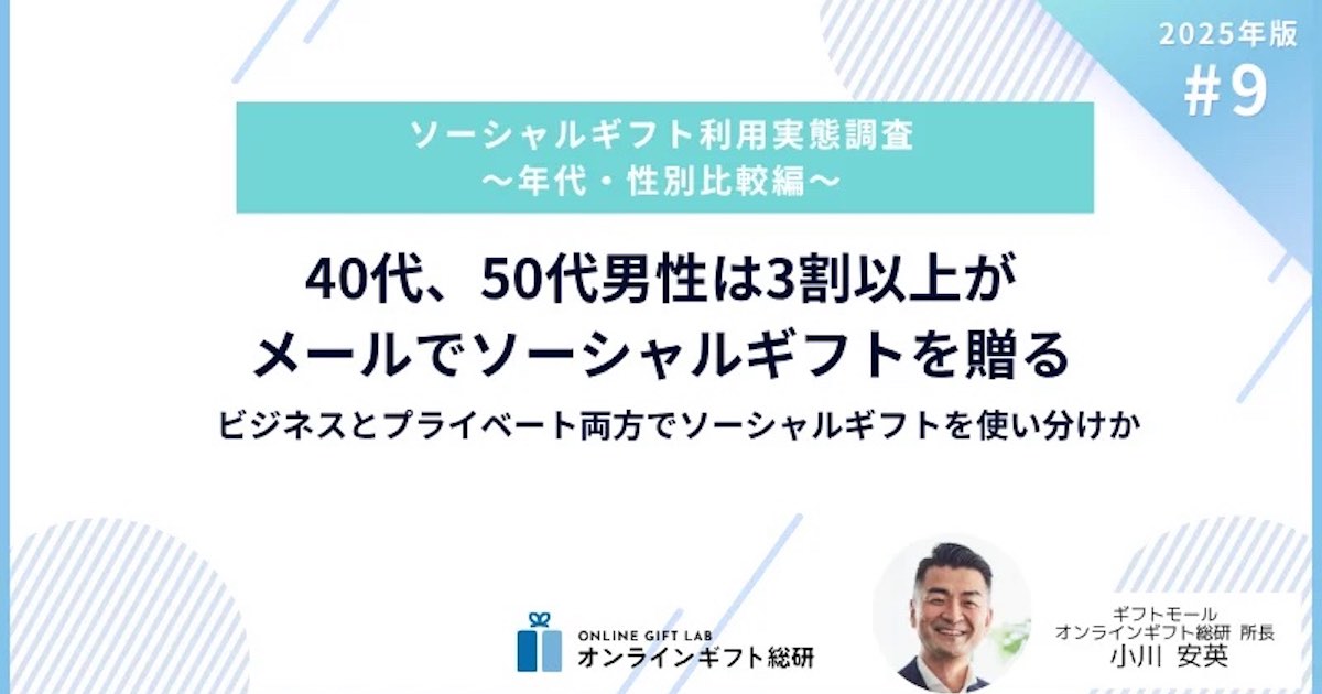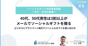 ギフトモールは調査結果を踏まえ、「若年層と比較すると中高年のソーシャルギフト利用率は低い。利用している人に限ると、50代の男性はSNSを利用しながらプライベートでソーシャルギフトを贈る一方、ビジネスギフトとしてメールを利用してソーシャルギフトを贈るなど、利用目的に応じてソーシャルギフトを使い分けている人が出現し始めている」と解説している。