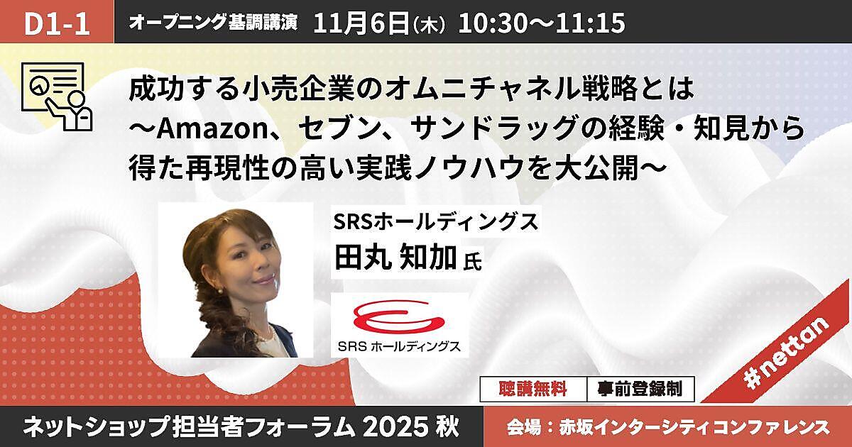 11月6日(木)+7日(金)に、大型オフラインECイベント「ネットショップ担当者フォーラム 2025 秋」を東京「赤坂インターシティコンファレンス」でリアル開催。ビームス、アスクル、ミスミ、タカラトミー、三越伊勢丹など大手EC・通販実施企業が登壇、実践的事例や知見を学べるセッションを多数用意しています。全公演すべて無料で聴講できます!(事前登録制)。まだお申し込みをしていない方のために、編集部がおすすめ講演の見どころをご紹介します。