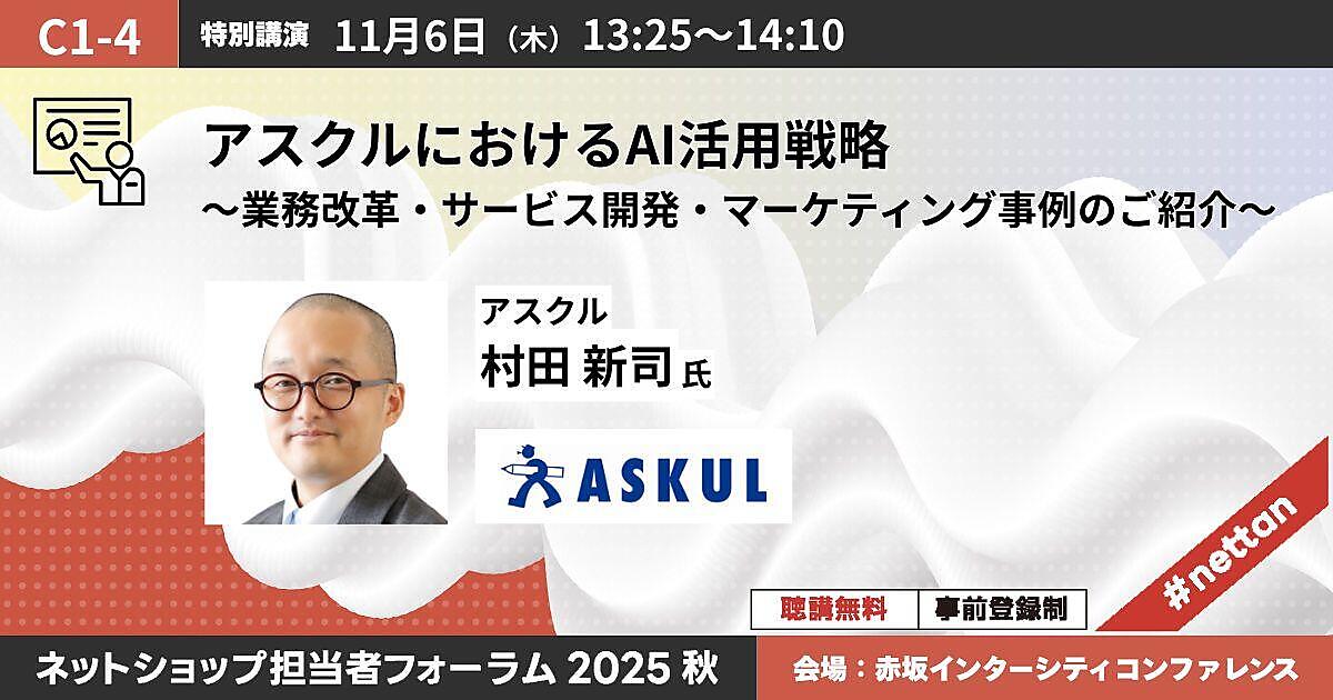 全社をあげて「AIトランスフォーメーション」を進めているアスクルさん。2025年春に専門チームを立ち上げ、社員がAIを活用できる環境を急速に整備しています。セッションでは、そんなアスクルさんがサービス、マーケティング、業務効率化などにAIをどのように活用しているか、実例を交えて解説します。