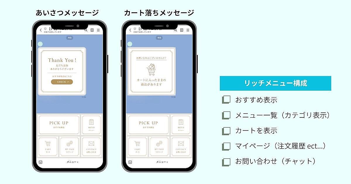 「おまかせ設定」は「Atouch」のプレミアムプラン以上の導入企業が対象。「リッチメニュー」「あいさつメッセージ」「カート落ちメッセージ」が「おまかせ設定」に対応する。