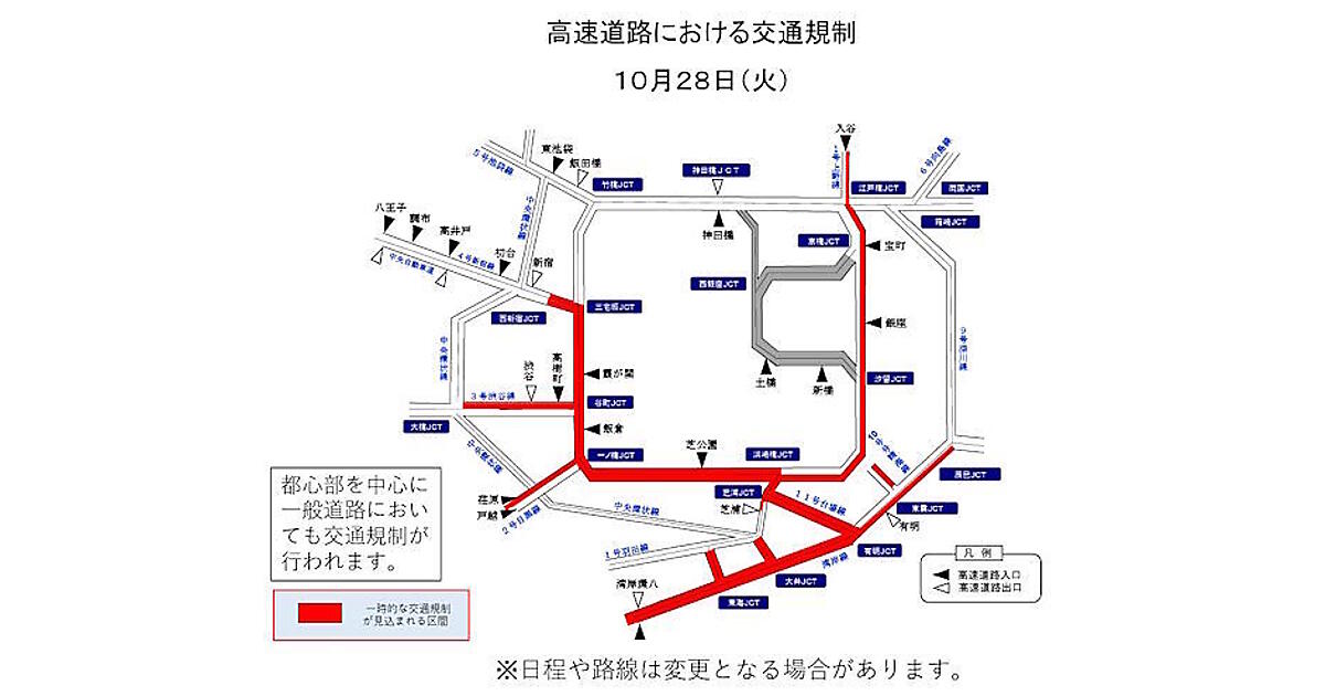 警視庁は、3日間は交通混雑が予想されると説明。「首都高速道路および都心部への車両の乗り入れを控え、電車・バスなどの公共交通機関を利用してほしい」と呼びかけている。