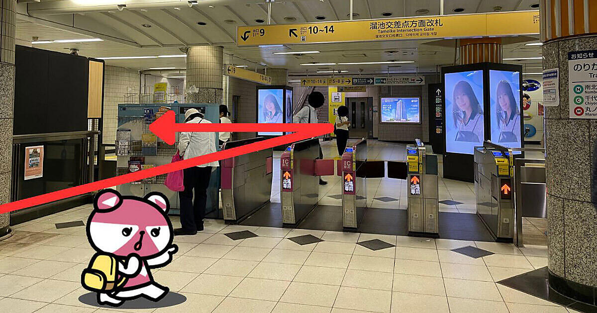 改札を出たら、斜め左方向にあるエスカレーターに乗ります。