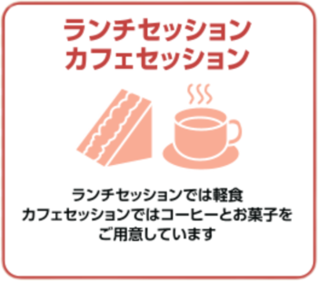 ランチセッションにお申込みいただくと、12時30分~13時10分の休憩時間に、軽食を日替わりで配布します。またカフェセッションでは、温かいコーヒーやお菓子をご用意しています。