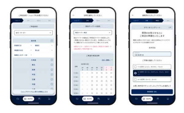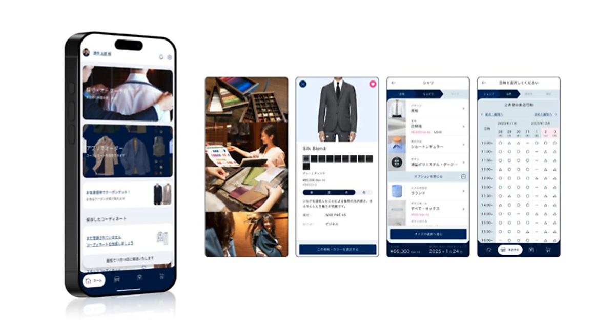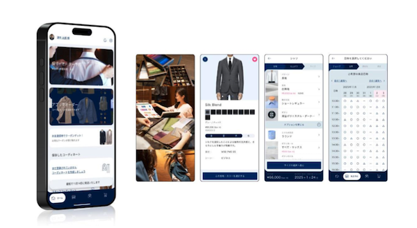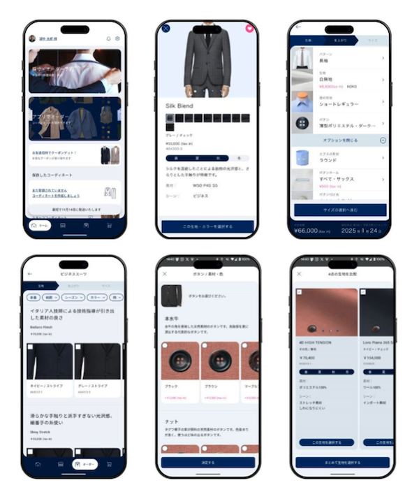 同ブランドでは、単にオーダースーツを仕立てるだけでなく、仕立て体験そのものを楽しめるサービス提供をめざしている。店舗ではテイラーが着用シーンや好みに合わせて採寸から仕様選択までを丁寧にサポートする。アプリでは初めてオーダースーツを作る人、何度も体験していて時間を効率的に活用したい人などにショップと同様の体験を顧客に提供できるよう、デジタルによるサービス提供の研究を重ねてきたという。