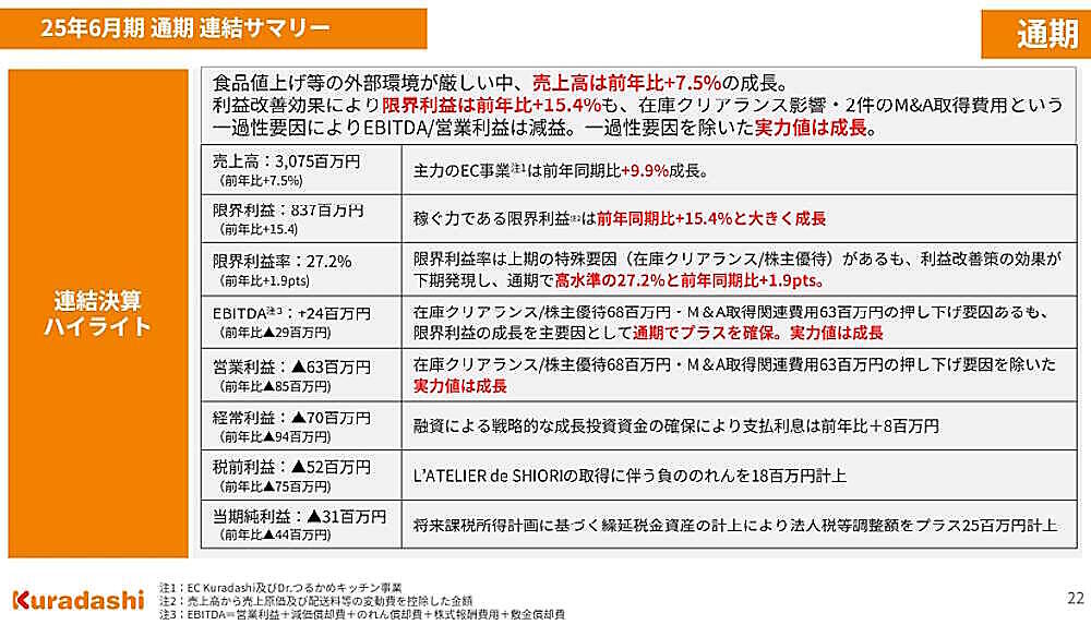 「Kuradashi」の累計会員数は2025年6月末時点で59万8000人。売上高のうち、主力のEC事業は前年同期比9.9%増だった。