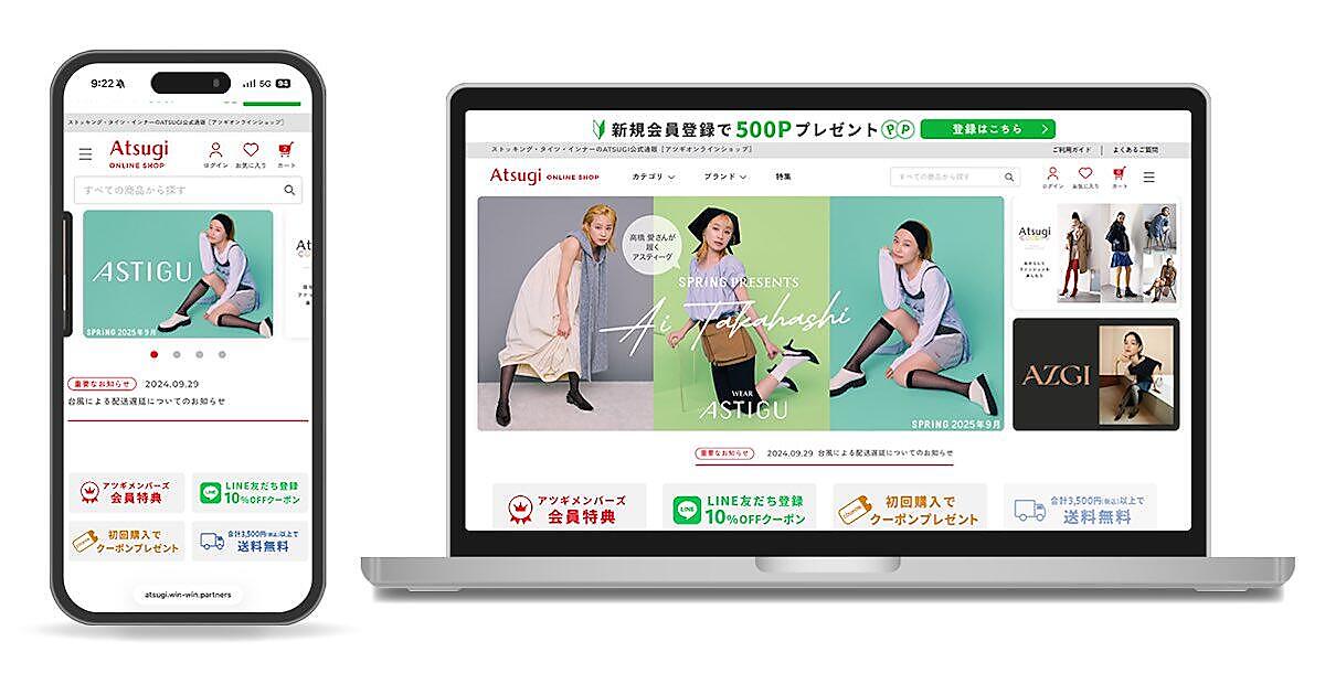 アツギは11月10日、ユーザーがより快適に買い物ができるよう自社ECサイトをリニューアルオープンした。利便性・操作性のアップ、決済方法の拡大、注文後30分以内のキャンセル操作、領収書のダウンロード機能などを追加した。今後のアップデートでは定期購入機能、予約購入機能の追加を予定している。