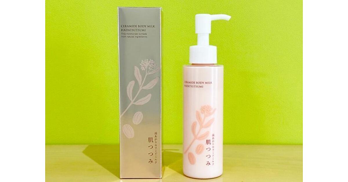 「三相乳化技術」を採用した新商品「湯あがりセラミドミルク 肌つつみ」は、10月28日に発売。価格は税込3080円で、定期コースでは一部割引もある。主な利用シーンは、湯上がり後の濡れた肌に浴室内で塗布して保湿する。三相乳化技術により、従来では難しかったレベルの植物由来オイルリッチ処方(60%)となっている。