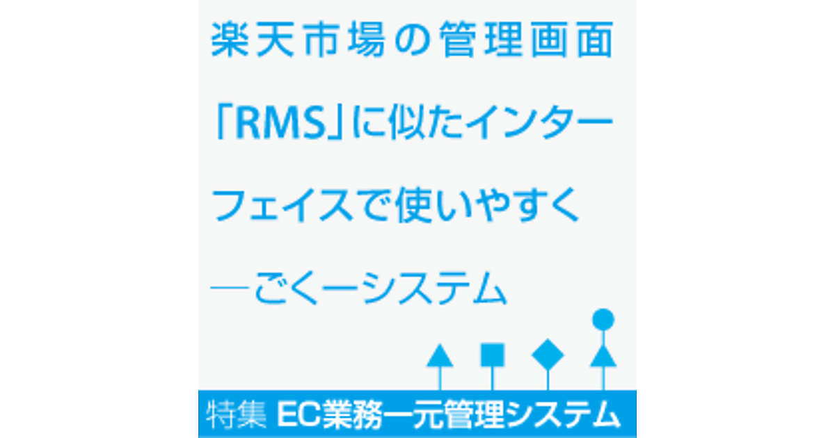 「ごくーシステム」の特徴としてまずあげられるのが、表示や使い方などのインターフェイスが楽天市場の管理画面「RMS」に似たデザインにしている点。こうした、複数の店舗を管理できる業務管理システムを使っている店舗のほとんどが、まずは楽天市場でECを始めており、楽天のRMSに使い慣れているケースが多い。使い慣れているRMSのインターフェイスに似せることが、事業者にとって最も使いやすいと考えた。