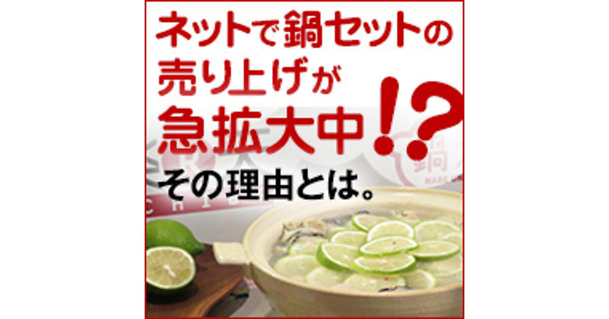 インターネット通販で鍋セットの売り上げが急拡大している。楽天によると昨年12月の鍋の売り上げは前年対比で約2倍と急伸長しており、今年はすでに楽天市場の食品ランキングの上位に数多くの鍋セットがランクインしてきているという。ネット通販で鍋セットが人気になってきている理由について探った。