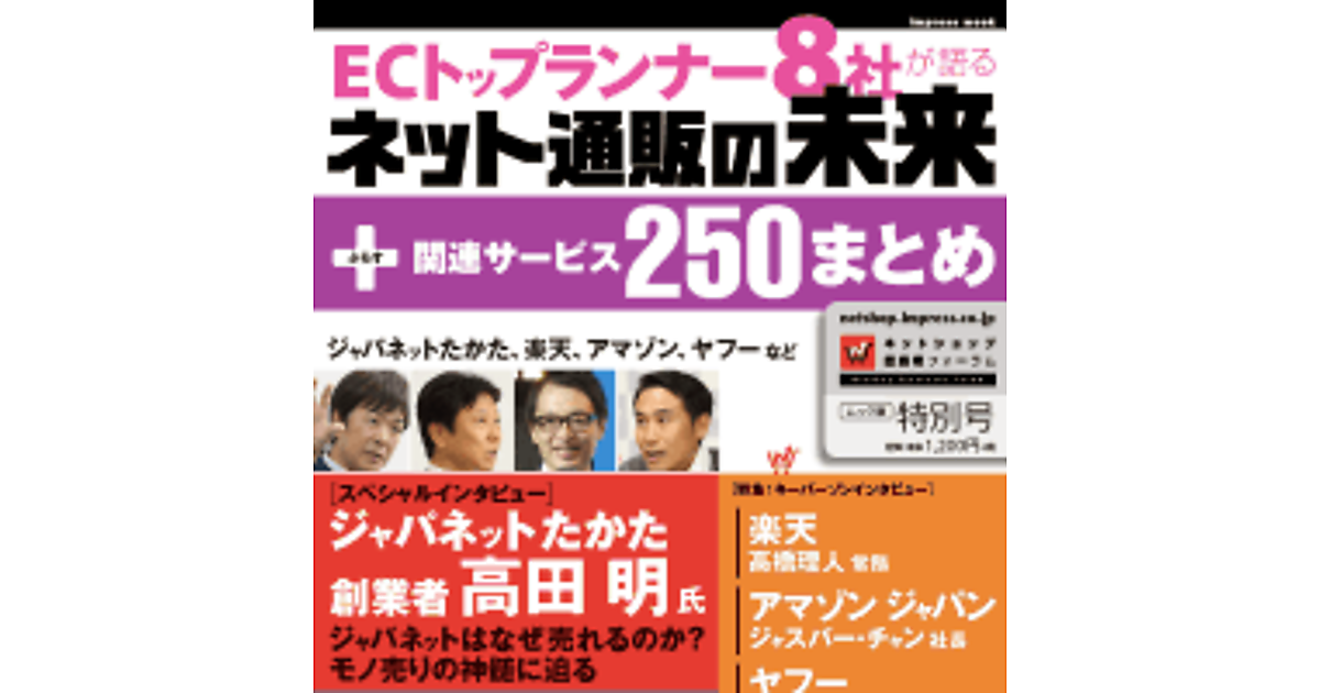 ジャパネットたかた、楽天・アマゾン・ヤフーなど8社がECの未来を語るムック本を発売