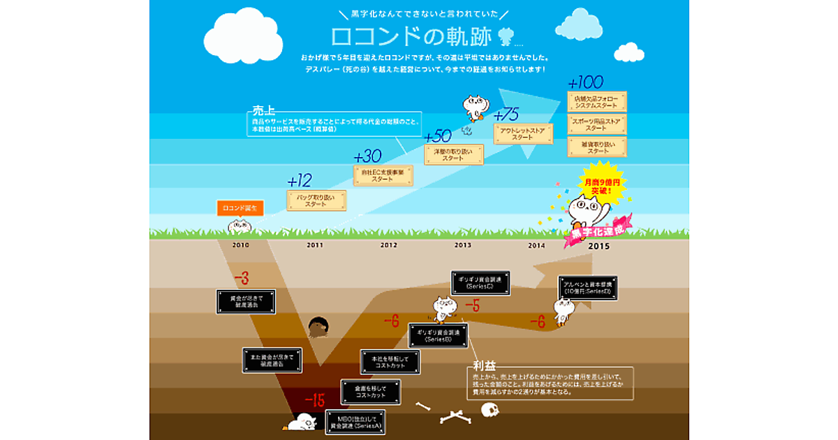 資金を調達するためのVC行脚は、シリーズD(2015年に行ったアルペンからの増資)まで継続的に行われた。その間、銀行口座に2000~3000万円しか残っていないという状況は4~5度ほど経験した。支払いができない危機には幾度も直面。そのたびに増資の引受先が決まり、経営危機をしのいだ。