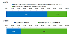 それぞれ回答した人から、なぜその販売形態を利用したかを問うと、ネット通販では「営業時間を気にせず買い物ができるから」が66.9%。続いて「品揃えが豊富、インターネット通販でしか買えない商品があるから」が61.0%、「安いから」が58.1%、「様々な商品の価格や品質を比較しやすいから」が53.1%だった。