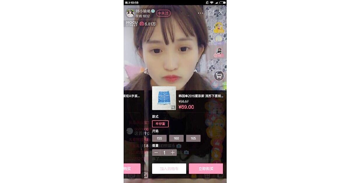 6月13日夜10時には、「モグジェ」のKOLである“劉小瑜咯”が生放送を実施。韓国の新作デニムスカートを、他の服との組み合わせやシーン別の着用提案といった自らのファッションセンスを共有しながら紹介し、1時間で20万いいね! を獲得しました。
