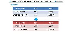 この結果から、「ブランドワード、ノンブランドワードのCVとTCV、CPAとTCPAには大きな開きはない」という事実がわかったのです。