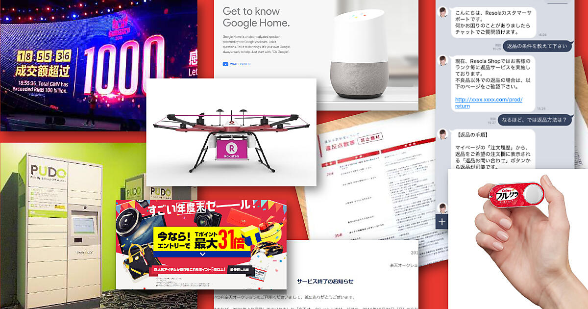 2016年のネットショップ業界の動向を3大モールの動きを中心に振り返ります。月ごとの話題を見ると 「これも2016年だったか〜」って思います。ドローン宅配、カゴ落ち、チャットボット、Google Assistant、Welqなども今年の出来事でした。