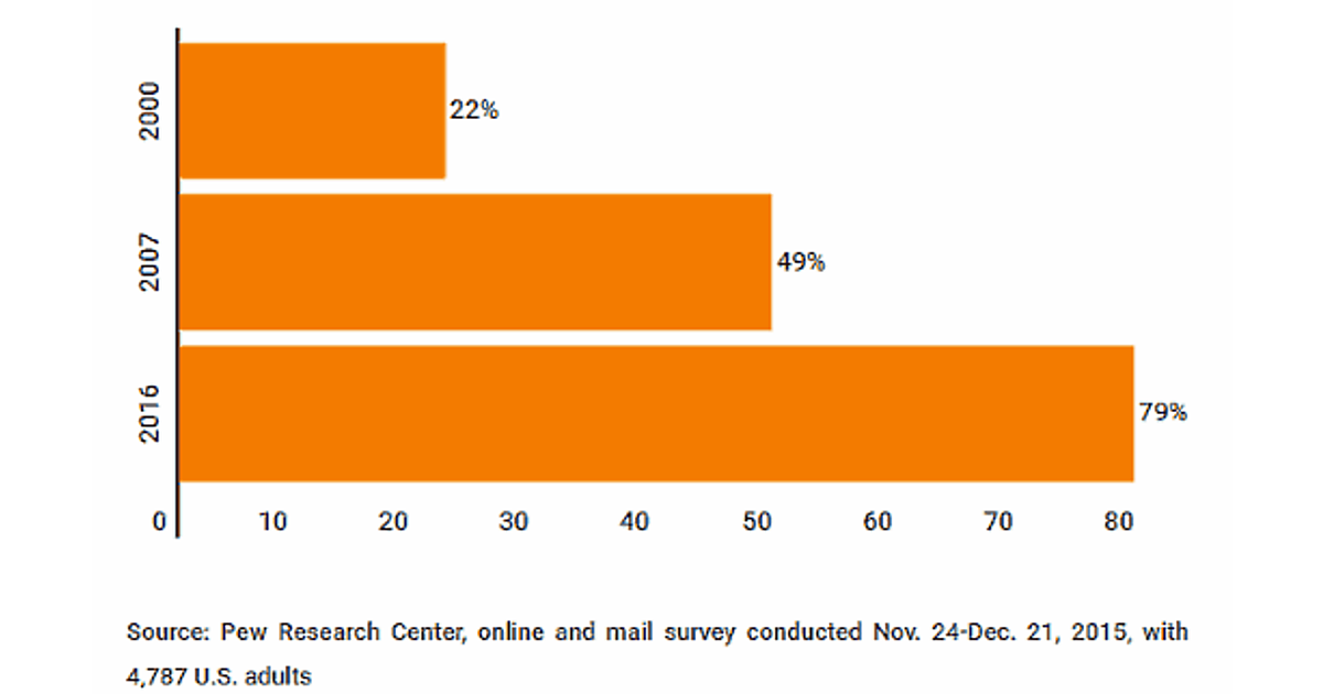 Pew Researchは2000年から同様の研究を続けています。2000年当時、EC利用者はたった22%。2007年の調査結果でも、その割合は49%にとどまっていました。Pew Researchの副署長アーロン・スミス氏はこう語ります。