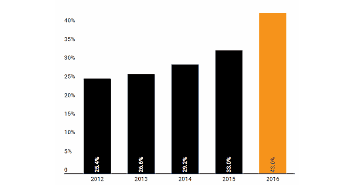 その数字は2012年の25.4%から上昇しています。アマゾンは、インターネットリテイラー社発行の「全米EC事業 トップ500社2016年版」で第1位にランクインしています。