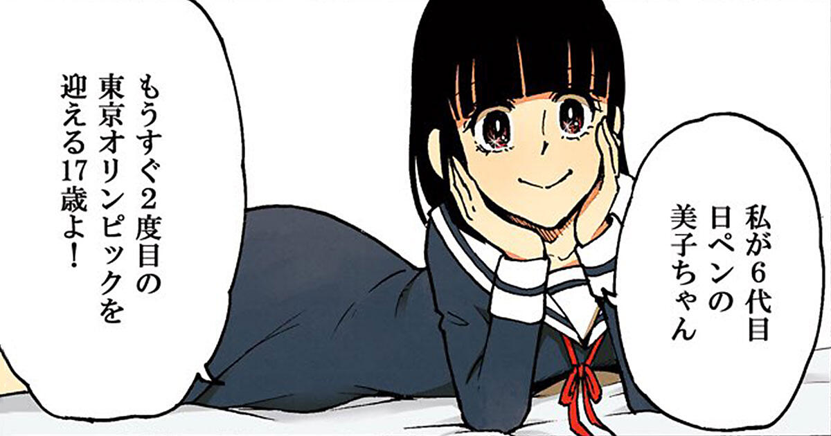 「日ペンの美子ちゃん」(にっぺんのみこちゃん)は、株式会社学文社が運営する「ボールペン習字講座」の広告漫画。「りぼん」や「なかよし」といった少女漫画雑誌の裏表紙(表4)に掲載されていました。