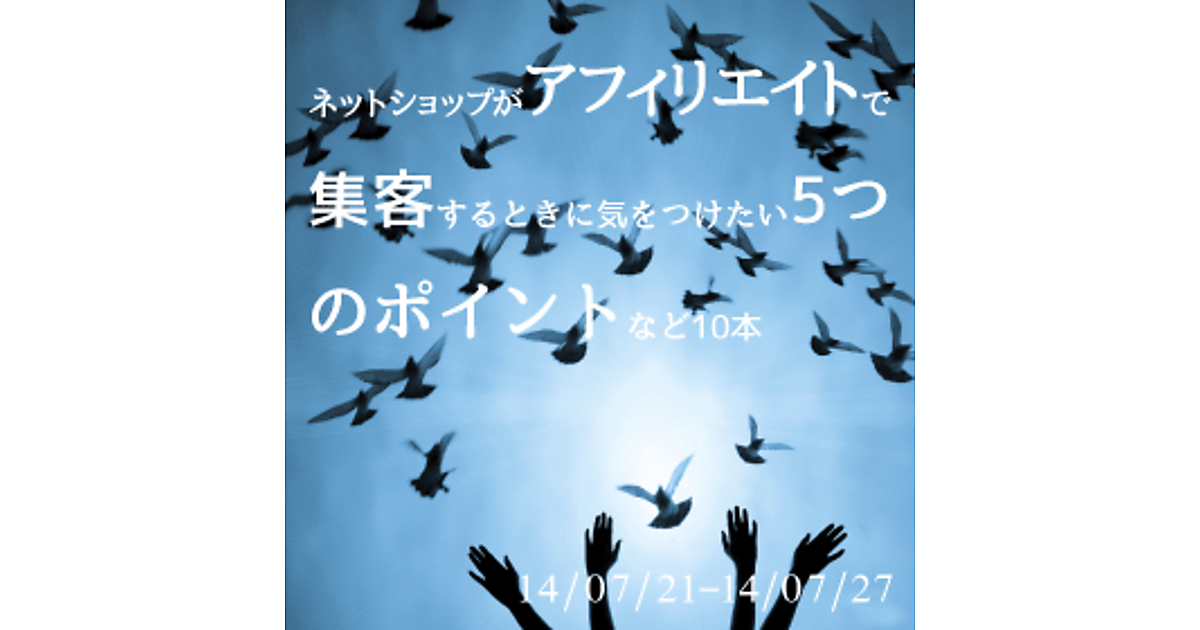 今週の要チェック記事はEC全般、SEO関連の記事です。EC全般ではアフィリエイトを実施するときの注意点が、SEO関連では会社としてどういう意識で取り組むのか? という点に触れています。