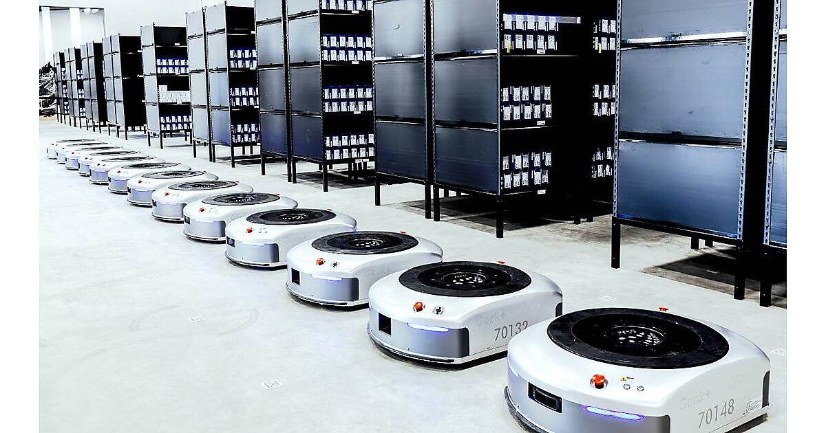 物流ロボット「Geek+」(ギークプラス)を導入したアッカ・インターナショナルでは、人件費を従来比2~3割削減できるという