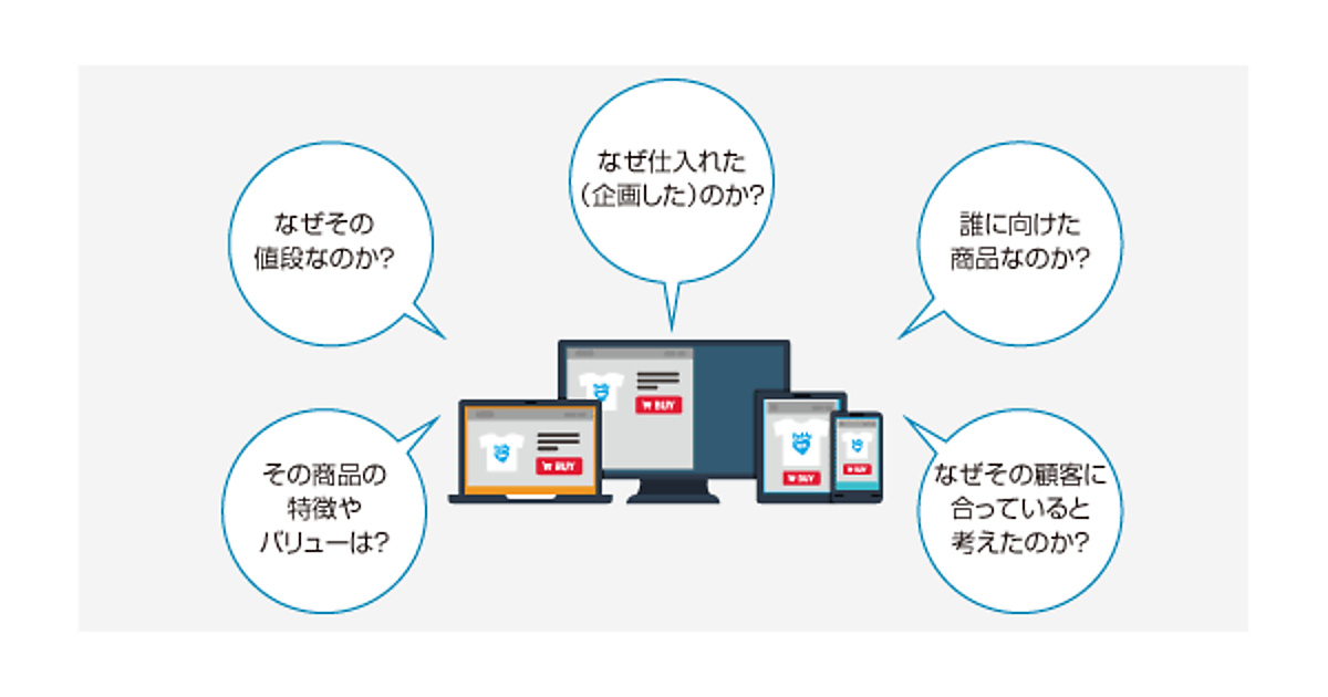 いずれにしても、どこの小売でも同じく、EC部門で仕入れようが仕入れまいが、最も大事なことは、仕入れ担当者(または、商品企画担当者)が、コンセプトにあったその商品を、「なぜ仕入れてきたか(企画したのか)」「誰(顧客)に向けての商品なのか」「なぜその顧客にあっていると考えているのか」「何がその商品の特徴・バリューなのか」「なぜその値段なのか」を、ECサイト上で正しく表現できるようにすることです。