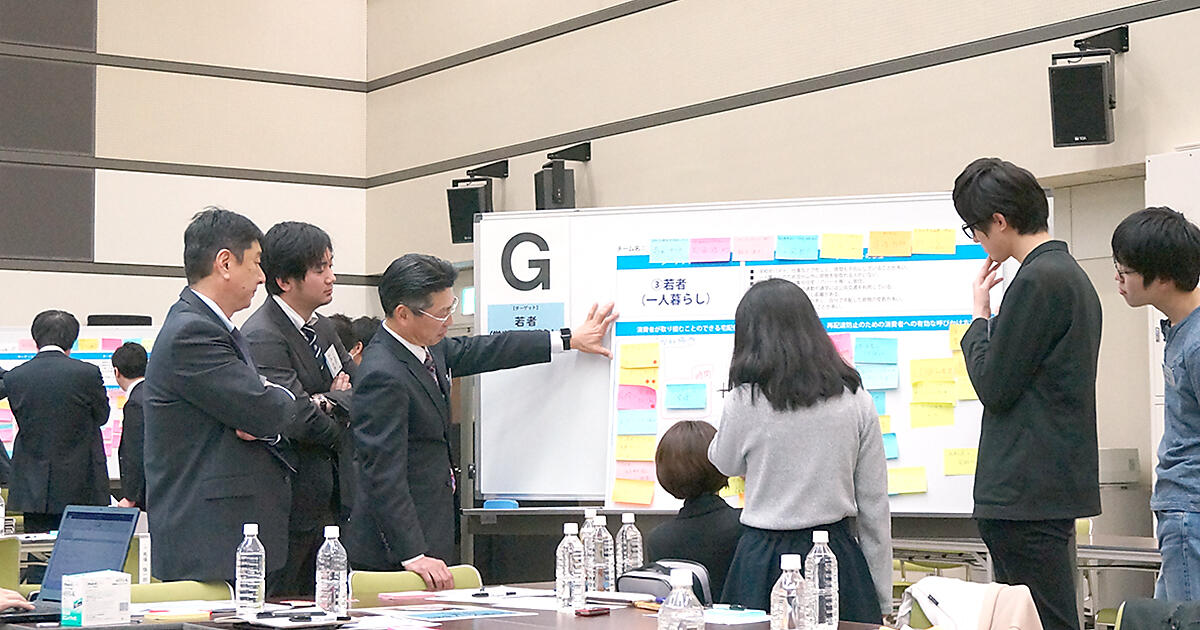 Fチームの意見には発想の転換があった。家にいない若者にどう届けるかでなはく、いる人に届けてハブになってもらう「宅配ハブ」という斬新な考え方だった。IKEAの家具の組み立ての件など(編注)、世界的にもシェアリングエコノミーが広まっている。ハブになる人を募るのはあり得ると感じた。