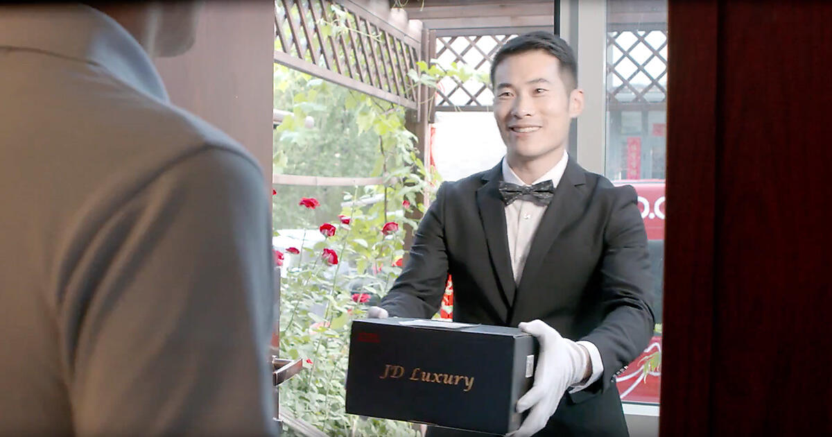 黒いスーツにネクタイを着用し、白い手袋を身につけたJD.comのスタッフが、荷物を直接消費者に届ける――。商品を顧客の手元に届ける「ラストワンマイル」まで高級感を演出し、まるでリアルの高級店で買い物をしたような体験を提供するのが「白い手袋」と呼ぶ配送サービスである。