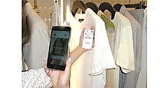 ハンガーにかかった洋服にはRFID(ICタグ)を搭載。ハンガーレールからハンガーが離れると、来店客(ハンガーを持った客)の「Farfetch」アプリにそのデータがリンクされ、自動的にその店舗でのウィッシュリストが作成されていきます。